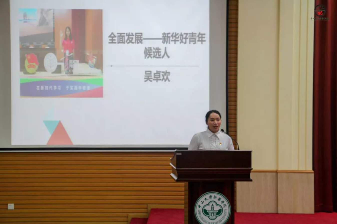 校团委陈忱副书记为2018年度中大新华好青年入围奖获得者颁发证书