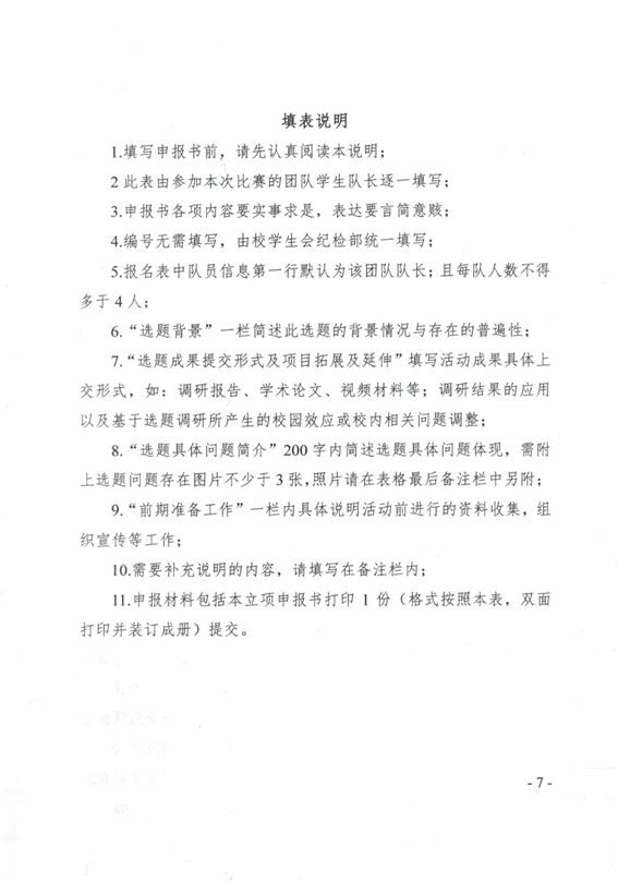 为了助力校园交通安全,营造良好的学习生活环境,请院(系)学生会(未成立二级院(系)学生会的由二级院(系)团组织举办)面向所在单位学生征集、推荐不少于1份提案。于2023年12月12日前上交调研报告及现场展评材料,最终由学校组织相关部门对入围作品进行审核、评定。(广州校区不作申报提案要求)