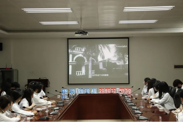 最后,工作人员进行初赛统分环节,同时大屏幕上播放团史学习视频,现场的老师与同学们共同回顾了中国青年在血与火的考验中为了家国而奋斗的光荣历程,悟初心谱新篇,致敬百年峥嵘岁月。经比赛比分评审后,主持人最终公布取得前四名成绩进入决赛的队伍名单,他们分别是来自宣传部的“争取全队”、来自办公室的“团团队”、来自组织部的“开拓者队”以及来自实践部社实的“从容应对队”。