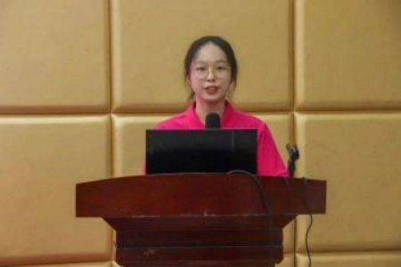 接下来,来自实践部2022级新生代表李春晖同学上台发言,她表示非常荣幸能够加入校团委这个大家庭,在这个大家庭里学到了许多有用的知识和技能,同时表达了自己作为新干部,会积极迎接新挑战,发出了不忘初心、敢于担当、敢于奉献的庄重宣言。