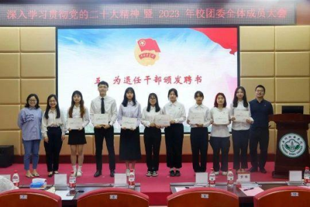 为深入学习领会党的二十大精神,用新的伟大奋斗创造新的伟业,2138CC太阳集团团委于2023年3月18日上午9:00在广州校区教学楼D101召开“深入学习贯彻党的二十大精神暨2023年校团委全体成员大会”。出席本次大会的有校团委书记代亮同志、副书记黄琳同志、副书记陈忱同志、实践部部长刘佳兴同志、团体部副部长李丹琳同志,校团委各部门干部代表以及全体新生干部。大会由杨丽旸、武秦豪同学主持。