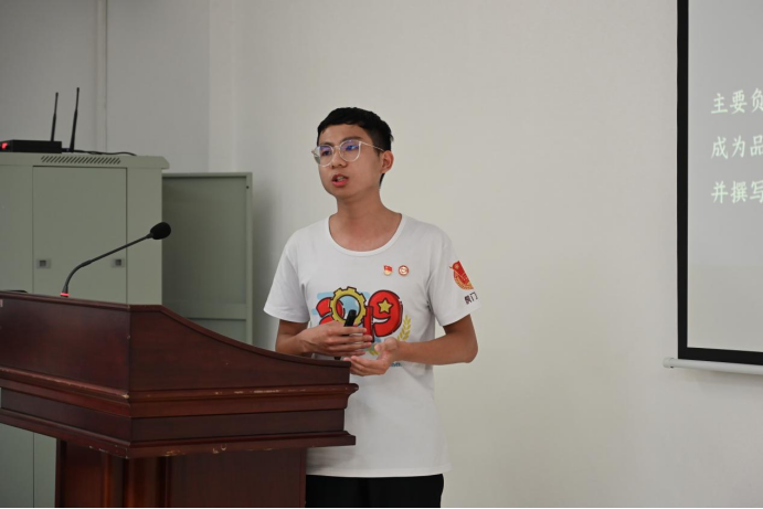 而后,主讲人罗智勇同学从组织架构分享、骨干队伍建设、品牌项目打造、校地合作经验四个方面开始分享。组织架构方面,罗智勇同学简单讲解了队长团、活动部、项目部、宣传部、联勤部几个部门的职能;骨干队伍建设方面,罗智勇同学分别给校青指和各院系志愿队给出了几点建议,培养志愿队伍;品牌项目打造方面,罗智勇同学从加强品牌项目申报书撰写、落实志愿服务品牌项目几个方面进行了讲解;校地合作经验方面,罗智勇同学从加强与团镇委的合作、加强与镇志协的合作、加强与政府职能部门的合作等进行分享。