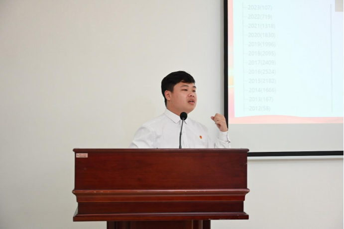 主讲人刘海亮同学首先开始志愿服务分享。在进行了简单的自我介绍和曾获志愿相关奖项介绍后,刘海亮同学从志愿合同审查与志愿品牌建设两个方面进行了志愿服务的经验分享。他先在志愿服务合同审查方面讲述了合同会涉及的主要纠纷、志愿者和志愿服务对象保护问题、主体问题、权利与义务等问题,又在志愿品牌活动建设方面讲述了打造精品志愿活动,选强促优扶小,同时利用现有资源,巩固并发展相关情况,力争向上向强。在志愿品牌活动建设中,刘海亮同学还提出四点建议,一是要集体研讨、集中落笔;二是要形神兼备、精致精准;三是要主线清晰、语言精炼;四是要突出重点、体现价值。
