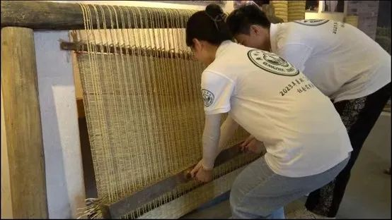 征求过陈馆长的同意后,队员们学习并体验席床的使用。队员体验后说道:“工具比较重,需要双手同时抬起。”可想而知,在抗战时期村民们为战士制作足量的草席付出了多少努力。