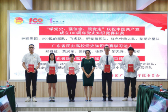 图七:党委统战部部长殷丹同志为“‘学党史、强信念、跟党走’庆祝中国共产党成立100周年党史知识竞赛”“广东省民办高校党史知识竞赛学习达人、百佳战队”获奖代表颁奖
