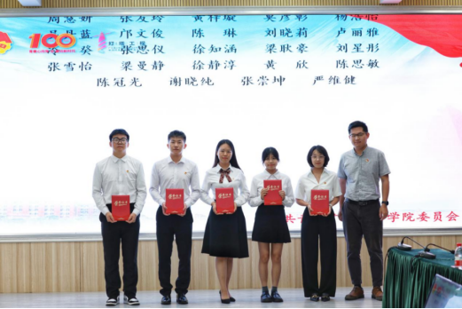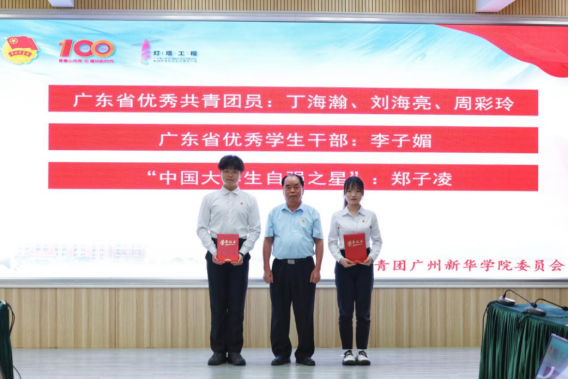 图十:蓝永金副书记、副校长为“广东省优秀共青团员”“广东省优秀学生干部”“中国大学生自强之星”获奖代表颁奖