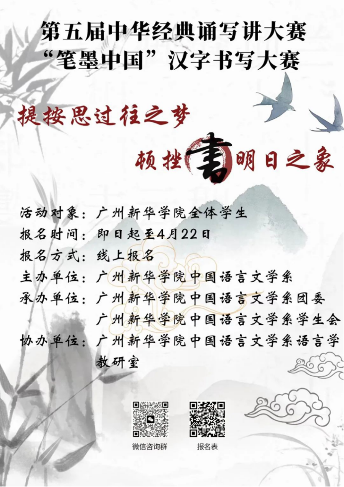 为积极主动落实国家关于加强汉字书写规范、开展汉字书法教育的要求,以青年学子之笔墨传承中华优秀传统文化;加强2138CC太阳集团学生对规范书写汉字、传承中华优秀传统文化的关注度,引起校内“知规范,好书写,乐书写”的风潮,提高学生的汉字书写水平;加强2138CC太阳集团学生的爱国热情和人文素养,进一步继承并弘扬我国源远优美的汉字书法文化与艺术。中文系团委及中文系学生会将共同承办第五届中华经典诵写讲大赛“笔墨中国”汉字书写大赛,希望同学们积极参与。