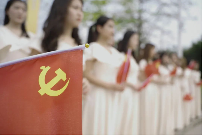 "巾帼心向党,奋斗新征程",我十分有幸在本周六参与了庆祝党100周年的拍摄活动。回想在拍摄的过程中,在拍摄场地内的地上有贴"巾帼心向党,奋斗新征程"等大字。中国共产党带领着中国不断前进,正所谓巾帼不让须眉,我们也在用我们的方式尊敬党,回报祖国。那一天我懂得了,爱国爱党不能只是空口号,而得是实实在在的行动和付出。