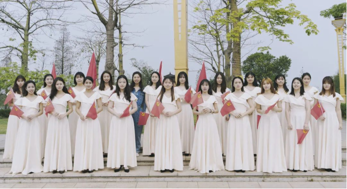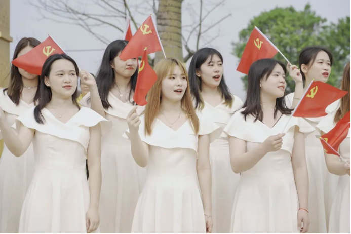我作为20级的新生能与其他19位小伙伴代表学校合唱队参加本次妇联活动是一件十分荣幸的事。在合唱队里大家都在用激昂澎湃的歌声歌颂党。录制当天,我们听到了各个妇女方阵对《我们走在大路上》这首歌演绎,大家用美的歌声表达对中国共产党的感激和祝福,向党敬礼。