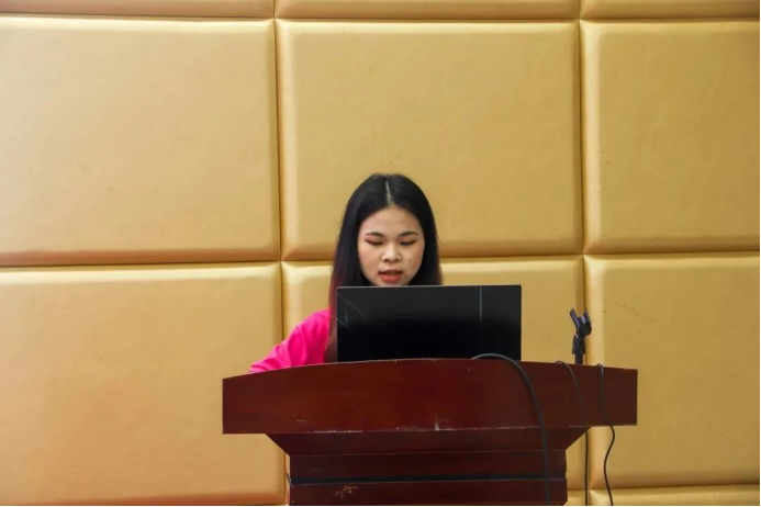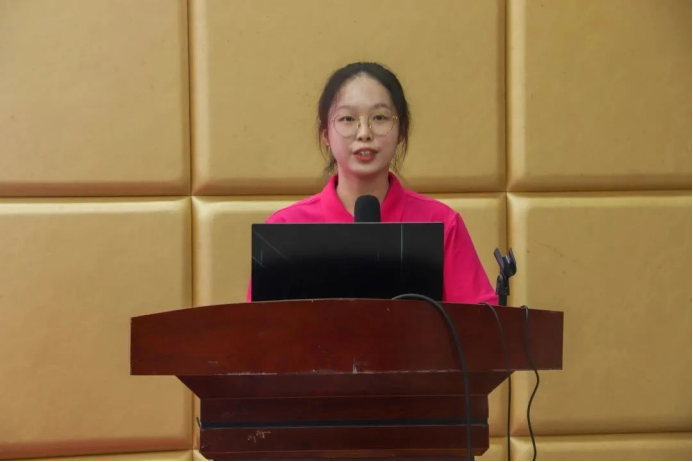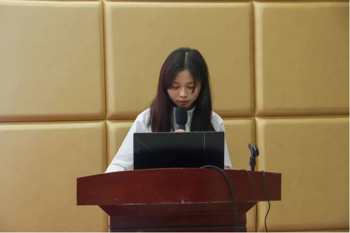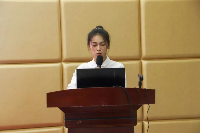 接下来,来自实践部2022级新生代表李春晖同学上台发言,她表示非常荣幸能够加入校团委这个大家庭,在这个大家庭里学到了许多有用的知识和技能,同时表达了自己作为新干部,会积极迎接新挑战,发出了不忘初心、敢于担当、敢于奉献的庄重宣言。