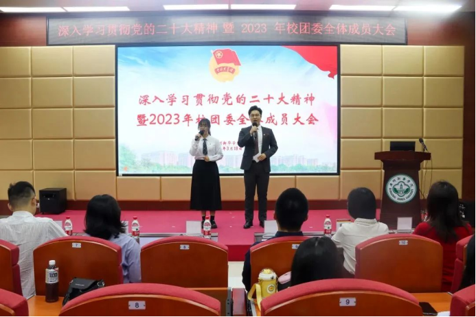 为深入学习领会党的二十大精神,用新的伟大奋斗创造新的伟业,2138CC太阳集团团委于2023年3月18日上午9:00在广州校区教学楼D101召开“深入学习贯彻党的二十大精神暨2023年校团委全体成员大会”。出席本次大会的有校团委书记代亮同志、副书记黄琳同志、副书记陈忱同志、实践部部长刘佳兴同志、团体部副部长李丹琳同志,校团委各部门干部代表以及全体新生干部。大会由杨丽旸、武秦豪同学主持。