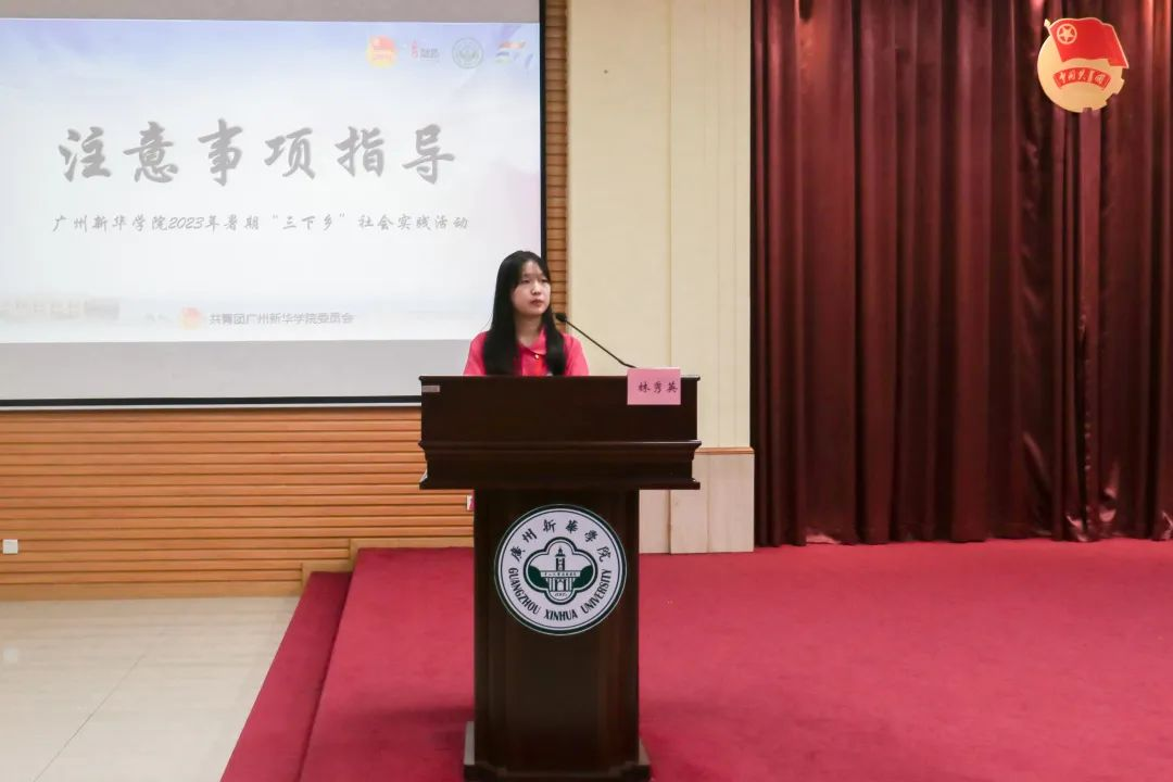 大会的最后,校团委实践部林秀英同学分别从“三下乡”流程、经费报销以及安全注意事项三个方面为团队进行“三下乡”过程中注意事项的讲解。