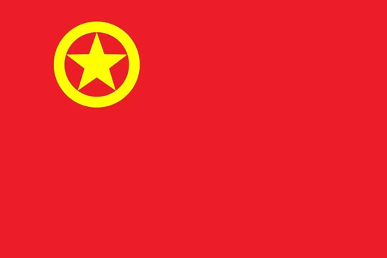 中国共产主义青年团团旗旗面为红色,象征着革命胜利;左上角缀有黄色五角星,周围环绕黄色圆圈,象征中国青年一代紧密团结在中国共产党周围。