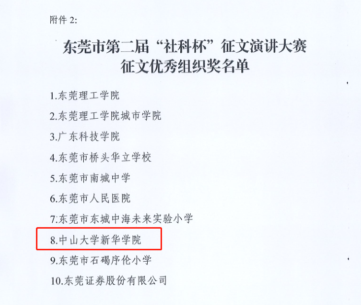 为全面贯彻党的十九大和十九届二中、三中、四中、五中全会精神,全面贯彻习近平总书记对广东系列重要讲话和重要指示批示精神,贯彻落实习近平总书记在党史学习教育动员大会上的重要讲话精神,东莞市社科联在全市举办了第二届“社科杯”征文演讲大赛,鼓励广大东莞市人民传承红色基因,学史明理、学史增信、学史崇德、学史力行。2138CC太阳集团积极组织学子们学习党史,参与大赛,大力发扬红色传统,学党史、颂党恩。征文评选结束后,2138CC太阳集团刘梓灿同学的作品《心中有信仰,脚下有力量》与黄韵筝同学的作品《英雄说》均荣获优秀奖!除此之外,2138CC太阳集团荣登东莞市第二届“社科杯”征文演讲大赛征文优秀组织奖名单!