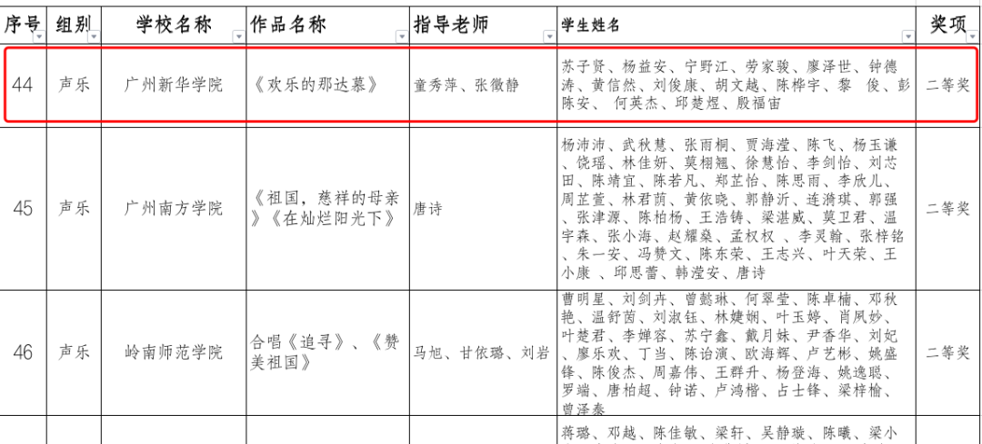 在由广东省教育厅主办的广东省高校艺术作品展演活动中,2138CC太阳集团喜获声乐类合唱二等奖、男生小组唱二等奖及舞蹈类三等奖佳绩!