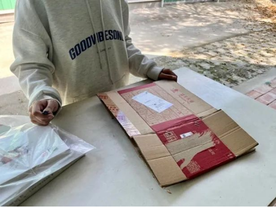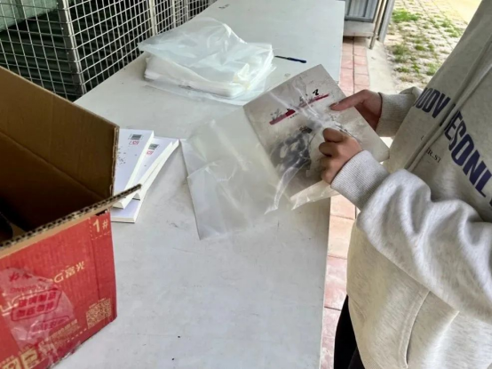 1.东莞校区菜鸟驿站建有2个垃圾分类屋,设有纸皮垃圾铁网筐和泡沫、塑料等垃圾铁网筐各一个,给快递领取者投放不同的拆包垃圾;垃圾铁网筐前摆放有拆包桌,配置美工刀若干,供拆除快递包装,并由“小黄狗”公司随时提供胶袋以便快递领取者装上拆包后的物品。
