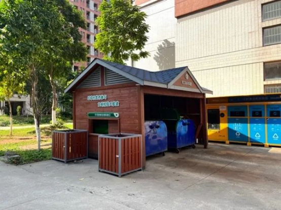 (二)东莞校区学生宿舍楼前环卫小木屋(垃圾小屋)的垃圾分类实施