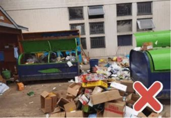1. 纸皮等可回收垃圾投放至垃圾小屋外的纸皮垃圾木筐