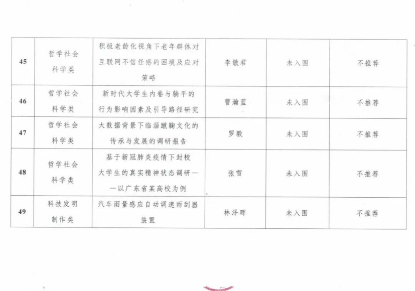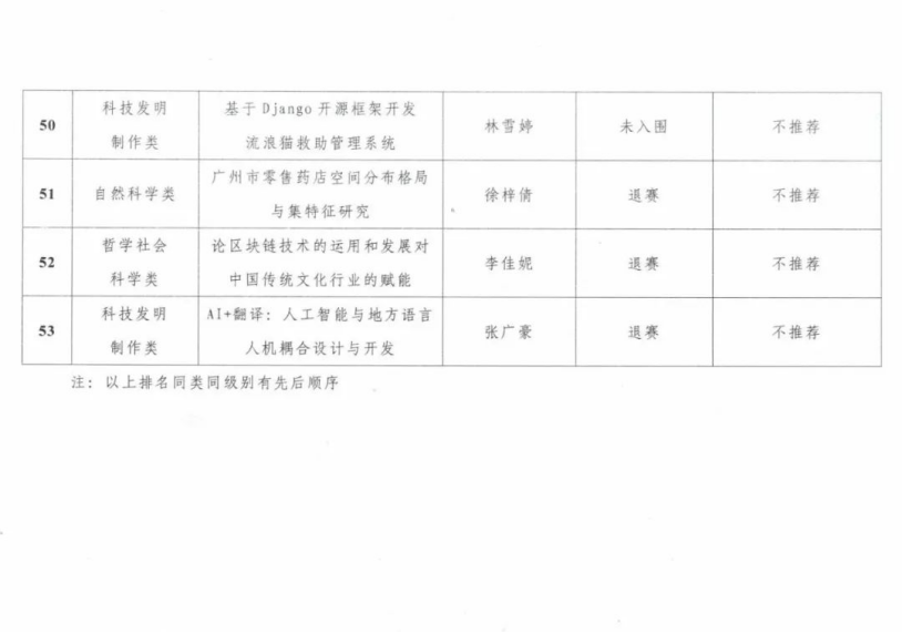 附件:2023年第十七届“挑战杯”广东大学生课外学术科技作品校内竞赛评审结果名单