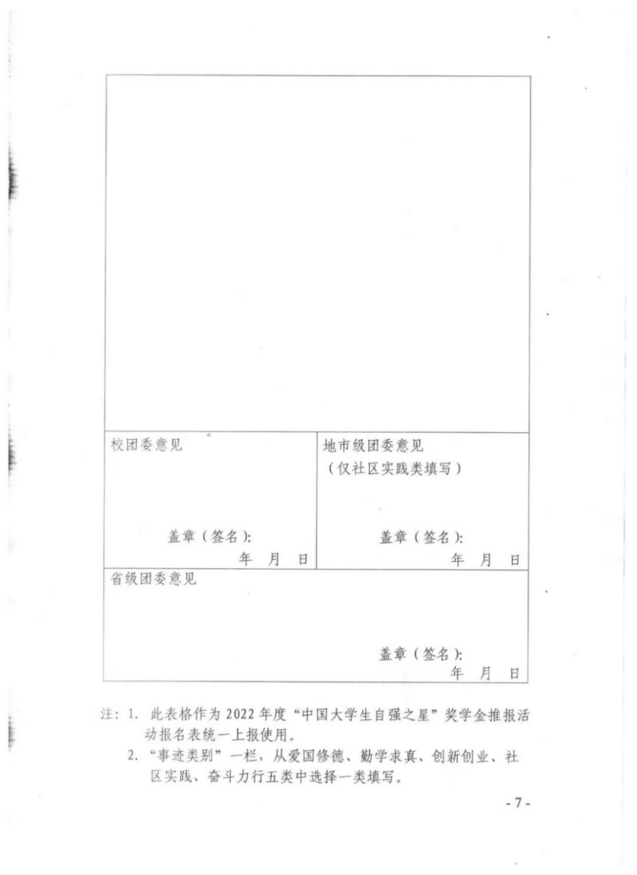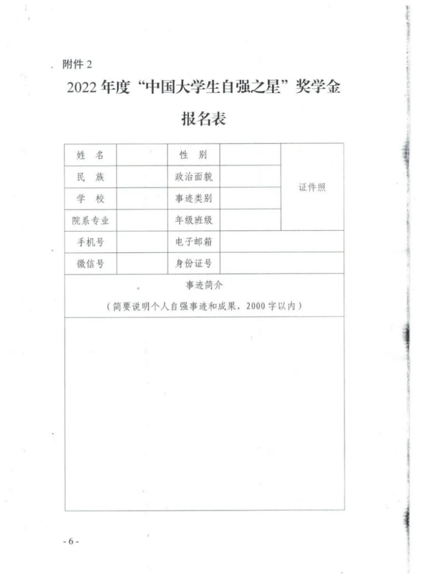 2.2022年度“中国大学生自强之星”奖学金报名表
