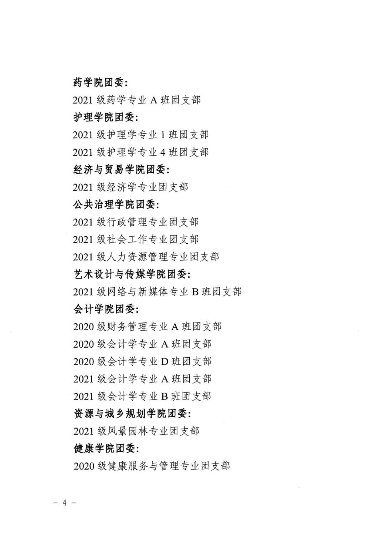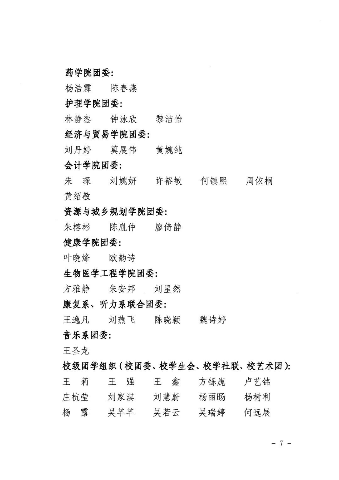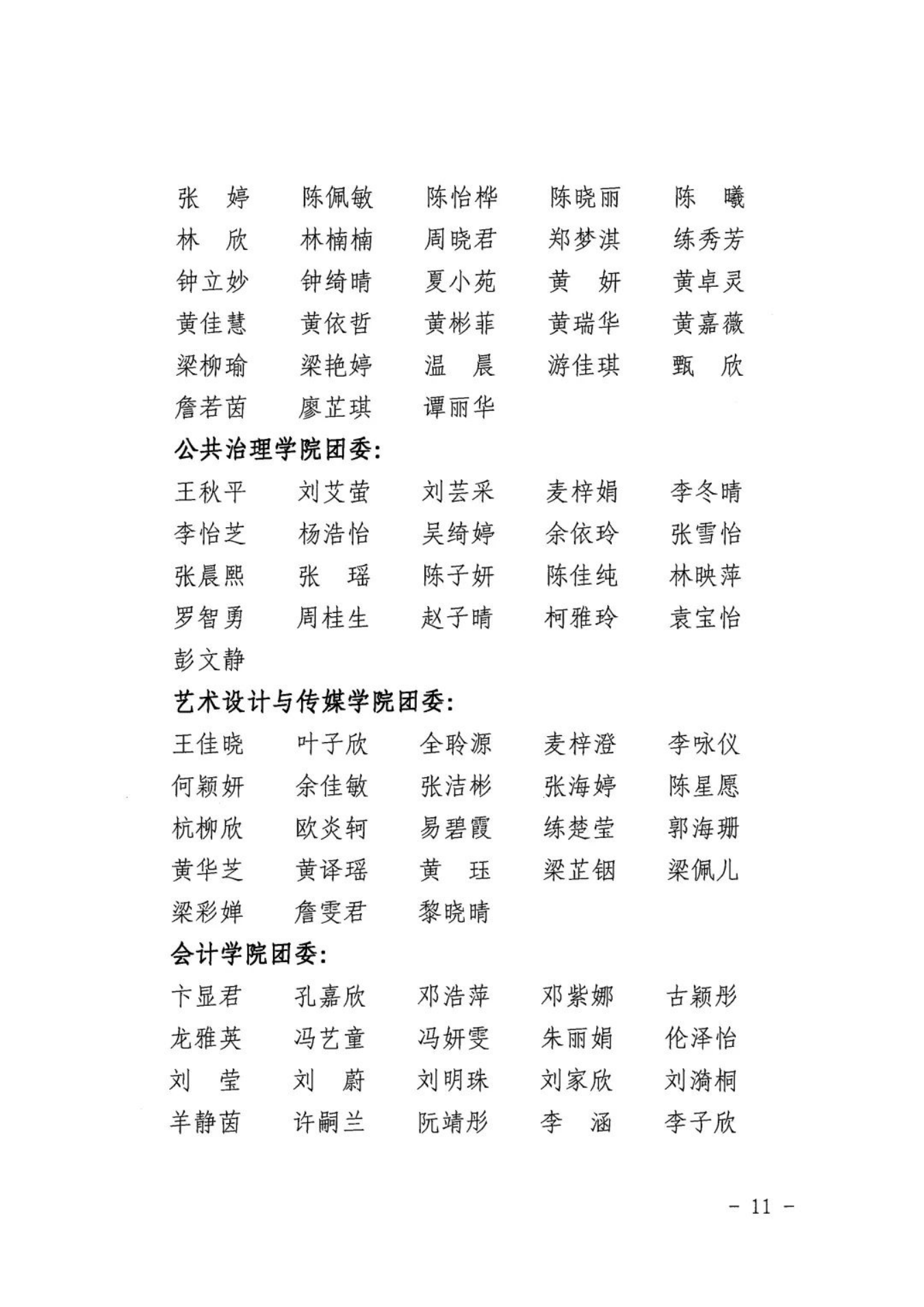 为表彰先进、树立典型、引导和激励全校各级团组织、广大团干部和团员青年奋发进取、再创佳绩,现决定授予会计学院团委等3个二级团委“五四红旗团委”荣誉称号;授予2021级英语专业C班团支部等25个团支部“五四红旗团支部”荣誉称号;授予万嘉瑜等456位同学“优秀共青团员”荣誉称号;授予江佩菁等78位同学“优秀共青团干部”荣誉称号;授予卢瑞茵等12位同学“优秀团支部书记”荣誉称号;授予蔡月明等5位同志“优秀专(兼)职团干部”荣誉称号。